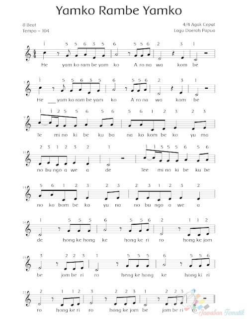 Ayo BerlatihAmatilah teks lagu “Yamko Rambe Yamko”. Identifikasi tinggi rendah nada dari notasi lagu di depan. Apa yang kamu temukan?